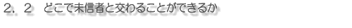 未信者たちのいるところへ出て行くことが必要です。これが、彼らに伝道する秘訣です。私たちの伝道ウェブページでは、どんな人たちがどんなウェブページに興味があるのかを研究し、彼らが使うような言葉を使用(または引用)しています。